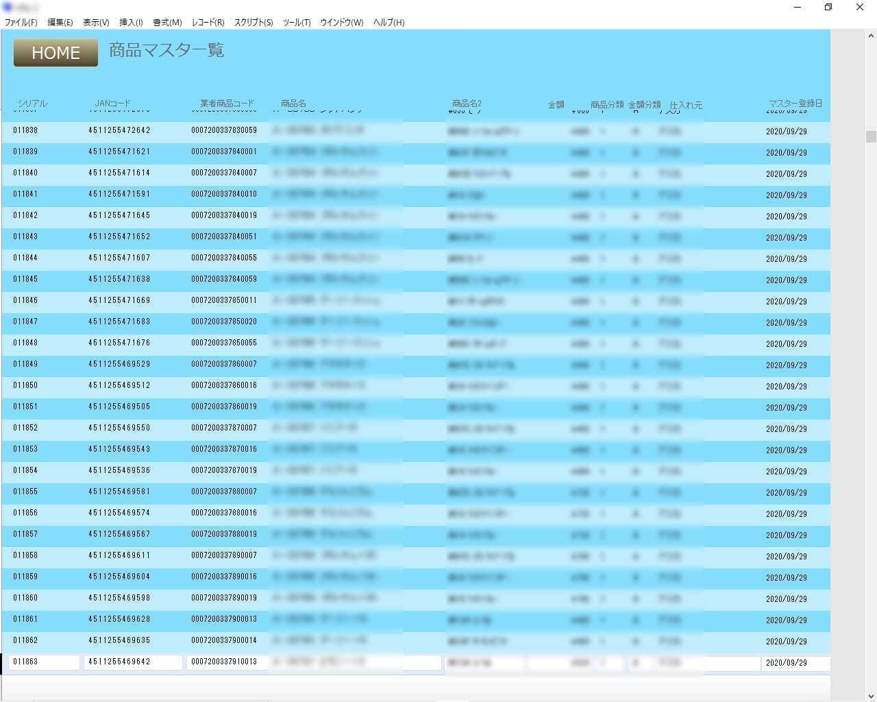 扱う商品が特殊なため、汎用の販売管理ソフトウェアでは対応しづらく、商品マスターから全てオリジナルで製作しています。POSレジを通して売上管理、在庫管理、棚卸が一貫して行える仕様です。倉庫に設置した入出庫入力との2台のPCでデータを共有しています。販売した商品の再発注表自動作成を後から実装しました。